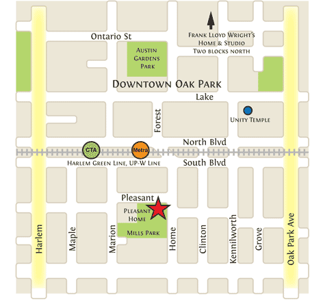 By train: Take the CTA Green Line or Metra UP-W line to Harlem. Walk east one block to Home Avenue, then south one block to Pleasant Street.